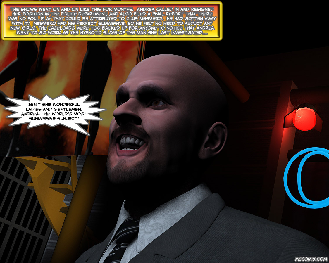 Things have been quite great for Mesmero. He has his perfect hypnotic slave, and his show and clb are both doing fantastic! Packed house every night to see the hypnotist and his subject perform! Everyone loves the exciting and erotic slave Andrea, and all is going well. The perfect match. Or is it? Will Mesmero hold his control over Andrea? Will everything in his world come crashing in? Or perhaps she is doomed forever to be his mindless fucktoy. The answers to these and many new questions begin to unfold in this newest and most exciting adventure of,